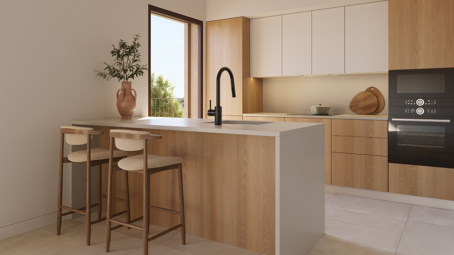 De luxueuze Nobilus appartementen in Vilamoura worden volledig afgewerkt opgeleverd, zodat je direct kunt genieten van comfort en stijl. Elk appartement beschikt over een moderne keuken, uitgerust met hoogwaardige apparatuur zoals een oven, inductiekookplaat, vaatwasser en zelfs een ingebouwde wijnkoeler. Bovendien zijn zowel een wasmachine als een droger inbegrepen, wat zorgt voor extra gemak.